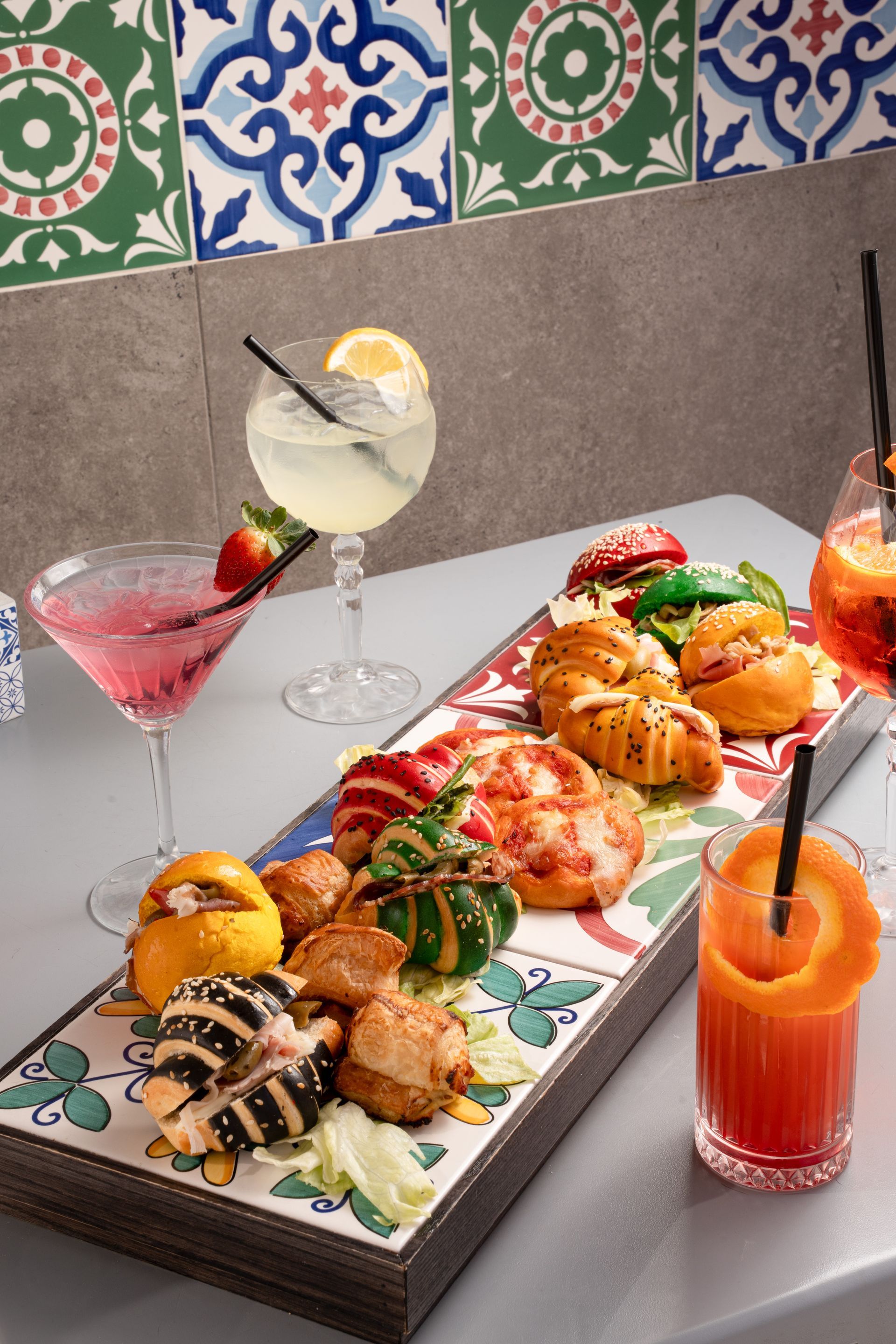 panini farciti, snack salati e stuzzichini, perfetti per accompagnare un aperitivo con cocktail, vini e bevande selezionate, in un’atmosfera conviviale e rilassante.